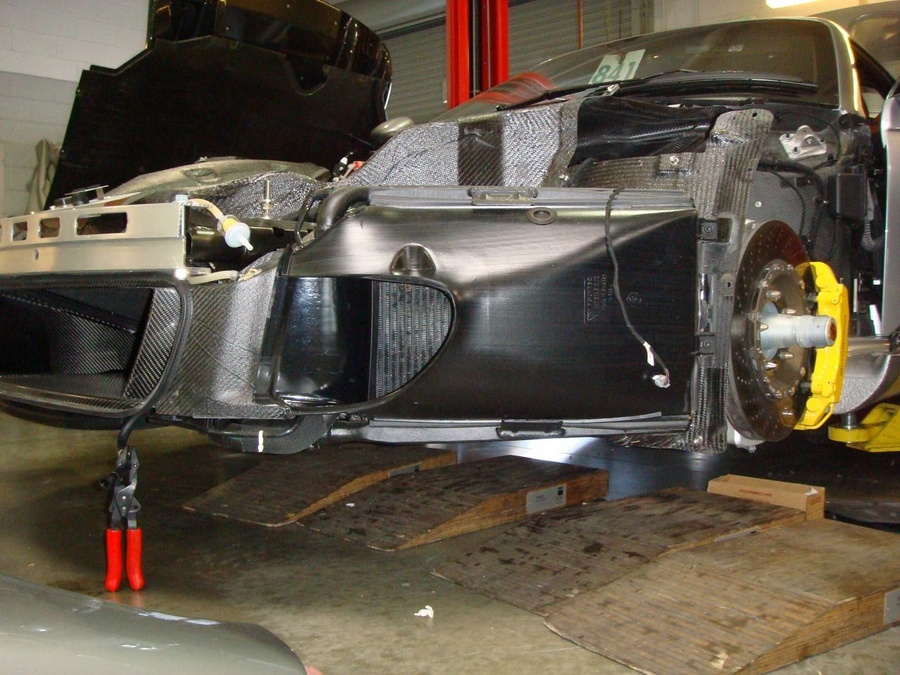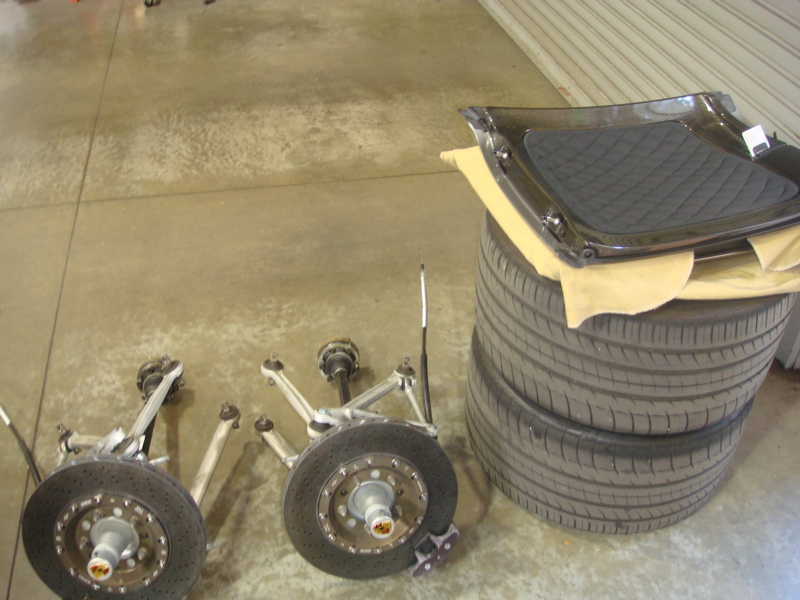 A few more pics - Doug, the shop foreman at Carlsen Porsche is doing the work - my kind of guy - knowledgeable, meticulous, cool as a cucumber. The carbon fiber rear subframe is insanely complex - a beautiful piece. And that tiny ceramic clutch is a piece of kinetic art.