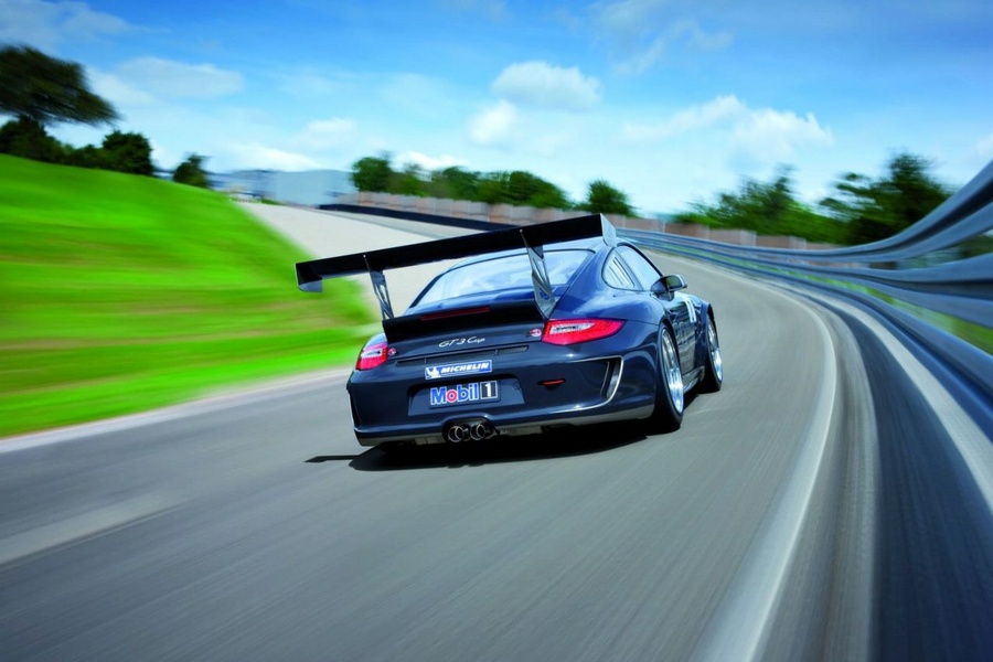 Engine capacity is up by 0.2 litres over the former model, engine output is 30 bhp more than before. The most important facts and figures: 3.8-litre six-cylinder horizontally-opposed power unit developing 450 bhp (331 kW), sequential six-speed manual gearbox, weight 1,200 kg (2,646 lb), racing version of the 911 GT3 RS.