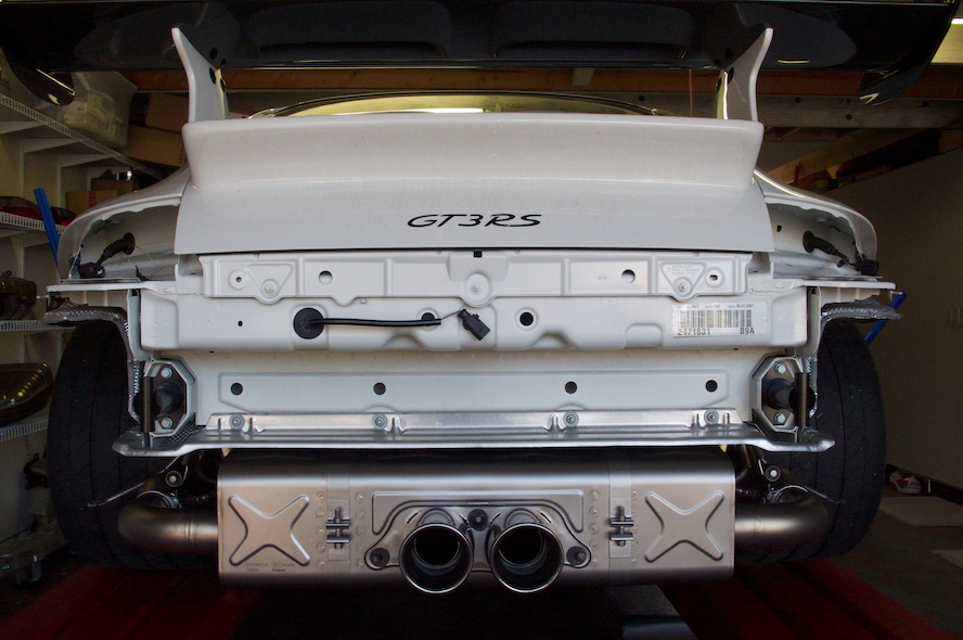 Installation was a lot of fun because taking off each part of the original exhaust reminded me each time of the weight savings I will experience up to 3’ behind the rear wheel axle (savings of about 60lbs). Wolfgang was told from Manthey racing that you can effectively multiply the weight savings by 3 under lateral acceleration. Good to know but most likely of no use for me since I will not race the car. I get off on knowing to have a top system on my car.