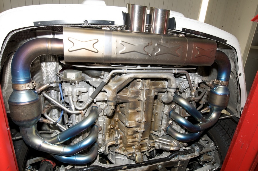 “ We used to build race exhausts for years so we are aware of the different power curves that you'll get with different tube lengths and tube diameters. *Basically you'll get more peak hp with short headers and more hp at midrange with long headers. *The Akrapovic headers seem to have about the same tube length as the stock Porsche headers and that is good. *With the long headers you'll get more torque and less peak hp indeed.