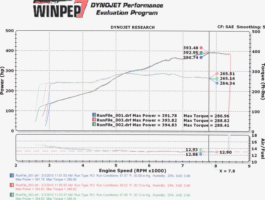 When the car only had 250 miles, one pull was done at operating temp and it dynoed: