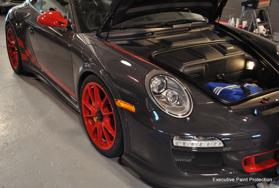 Here is a 2011 GT3 RS that we did a partial hood, fenders, mirrors, front bumper and custom rear bumper in premium Clear Bra Protection.