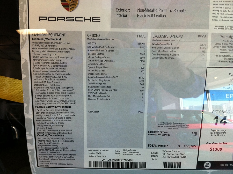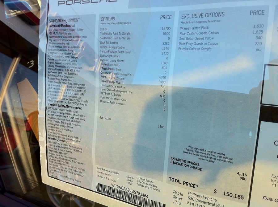 Yeah that's a shit-ton of money... I could do the Cayman R AND the RS5 for about that much. If I'm going to spend $150K on a GT3, it'll be to my order.