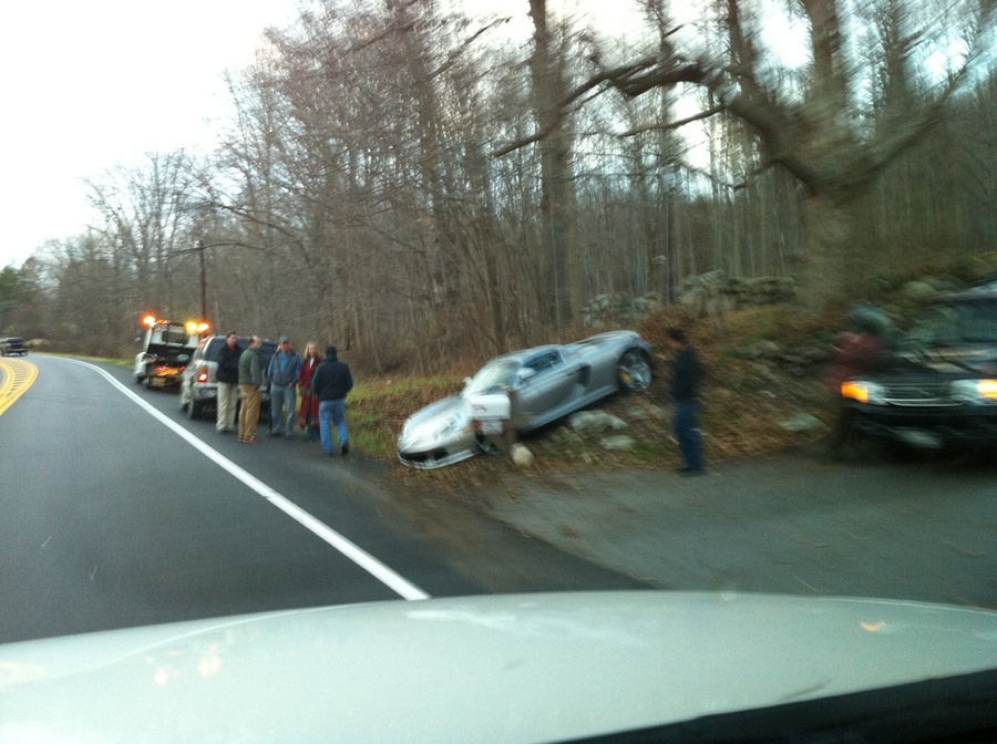 It's been a while since I posted 2 years to be exact but just spoke to DJ today and thought I would get back on and contribute what I could. SO here I am with a photo I was able to take 2 days ago on my way home. This took place on RT 35 in South Salem NY about a mile away from my home. Looks like cold tires and a desire to go around a turn a a bit to fast made this guy end up in a ditch. Not sure who it was there are quite a few owners up here so was not able to make out the driver but as the old saying goes another one bites the dust.