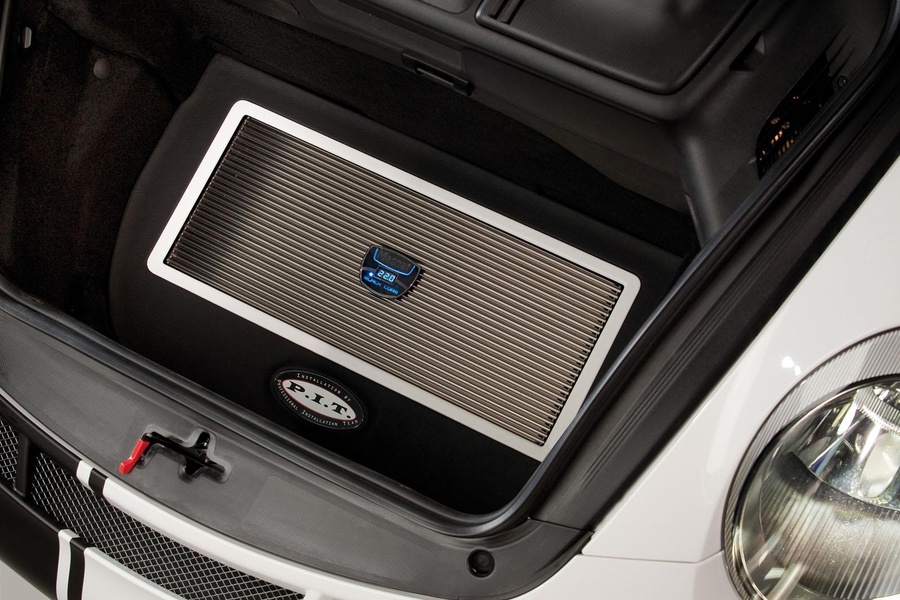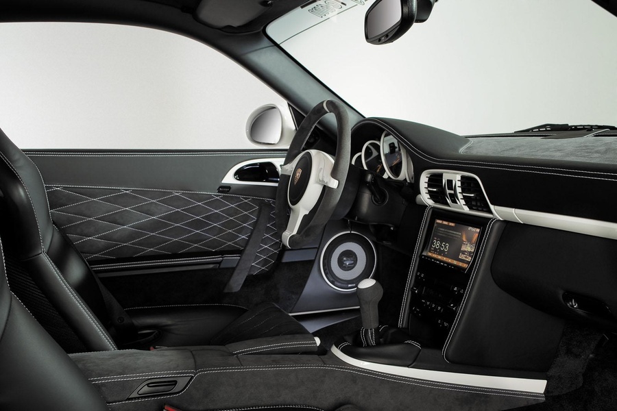 The 2,100 watts sound system has been adapted by Magnat especially for the GT3 interior. The original loud speaker brackets have been technically overhauled, offering sensibly better sound blasting qualities in comparison to the serial sound installation. There have been employed Magnat Selection series loud speakers, letting the inner space sound like a concert hall because of their anodized PP membranes, high performance voice coils and the 1" textile tweeters. Especially for the GT3, Magnat has developed a down-fire subwoofer casing with 10" woofer. Normally, this woofer principle is being used only for high quality home cinema installations, but it matches fine with the impressionating sound acoustics. The heart of the sound equipment is formed by the Magnat Black Core 5 channel amplifier providing its total power of 2,100 watts for sufficient power reserves and music pleasure while enjoying to drive the GT3.