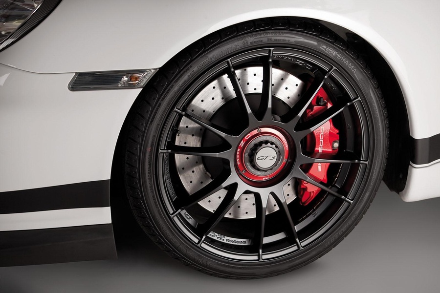 The wheel-tire-combination Ultraleggera HLT CT by OZ in 8.5 and 12x19 in. with Yokohama Advan Sport in 235/35-19 and 305/30-19 provides perfect contact with asphalt.