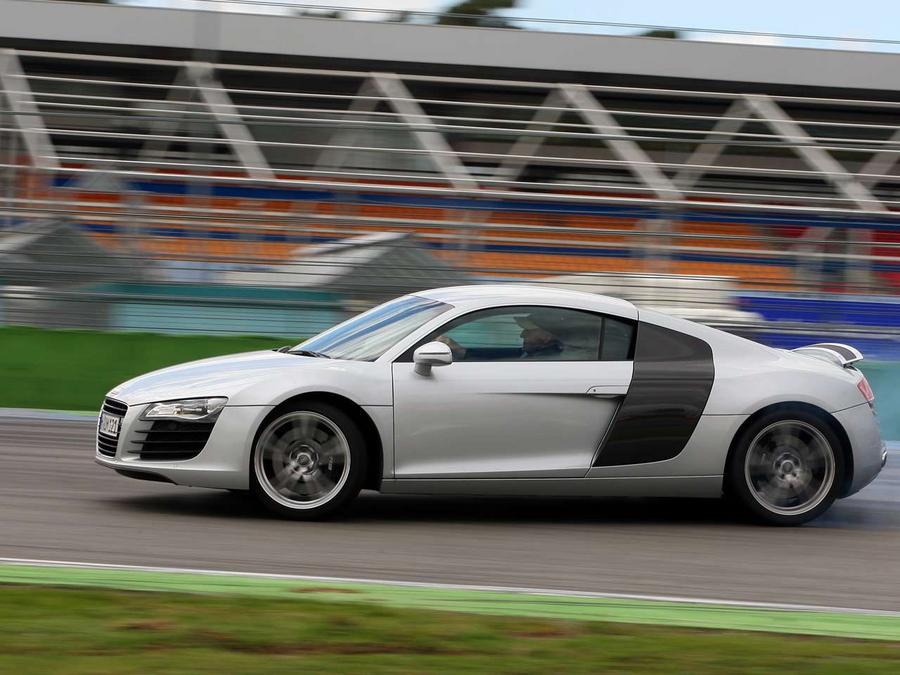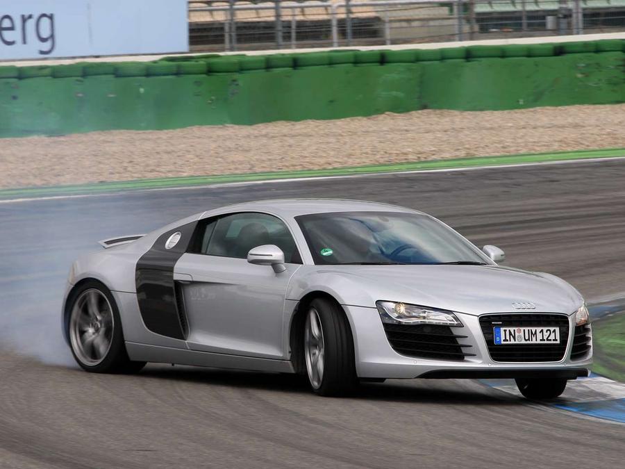 Now it comes to pure power. With 430 Newton metres torque, the R8 is more powerful than the Porsche, but his greater weight eliminated this advantage. On brake point before the close pointed turn are no more than 233 cases there. You realize the heavy burden on the brake, but even after two rounds at the absolute limit on the steel braking system is still reliable. Since raise many other sports cars already in the towel. The next quick right turn in the Directions to Mercedes grandstand requires great courage. You have the car some time and not brutally clean-sting, otherwise you go at the end of the asphalt. Only when the front axle then goes exactly where you want, you can give full warns Thiim. The whole plays in the Audi at 161 km / h. Short acceleration to stand, then hard left and in a broad arc toward the Motodrome. Must be re-Thiim back to the tyres not to overwhelm - and that it is difficult: The engine turns incredibly fast high. About 4500 revolutions then you have the right force and a frenzied sound. Would come only on the sound, it would require the Porsche over-round. Since we will no longer stop. But the Hockenheimring demands more. In Motodrome are curvy chassis qualities needed. The adjustable magnetic ride suspension system works very well and fast. Without the hard would you vote on the racetrack lost. Before Sachs curve 164 km / h, in which the apex 76 km / h. In the following exchange curves, the R8 tired and quiet, infuses much confidence. After he shoots 2.00,65 minute on the goal line.