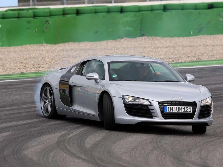 That is the control forces very high, the nervous strain for beginners because of the lack of ESP is well. If the GT3 begins to slip, the pilot only fractions of seconds to react. This is the Audi different. This helps the working perfectly all-wheel drive, good balance in the car. The ride comfort of the optional magnetic ride-chassis is amazing, the R8 is everyday than the GT3. Only on the racetrack nerves quadrant the open and build the tyres quickly. The series steel brake is on the other hand, stable enough. But perhaps builds Audi is still a club sport version of the R8 with semi-slicks...