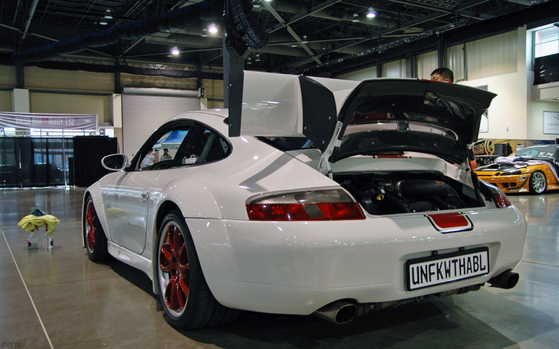 everything was redone on the car recectly. Well almost everything. The whole car was taken apart are repainted. That includes motor and trans. We updated the front end to the 2004 rsr style with all Carbon Fiber pieces. The rear is still 2000 GT3RSs style with carbon kevlar pieces (carbon fiber trunk)