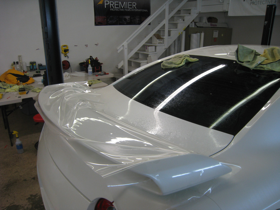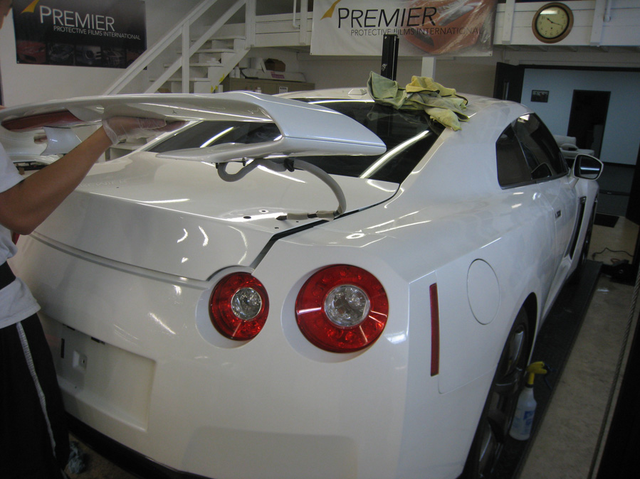 And seemingly a lot of clients have requested 1 piece trunk deck lids. Why? Because it looks good. And next to doors, they are the second most touched part of the vehicle! But the GTR has that spoiler... hmmm... well we'll just have to take it off. Let's wrap that while we're at it!