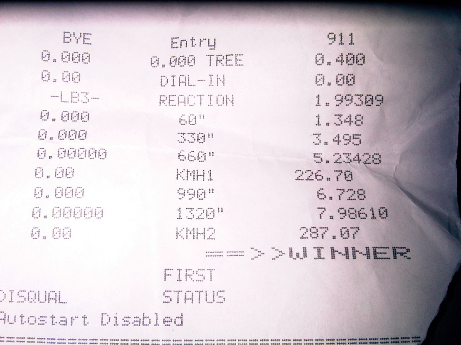 At last guys i ran 7.98 @ 287 km/h