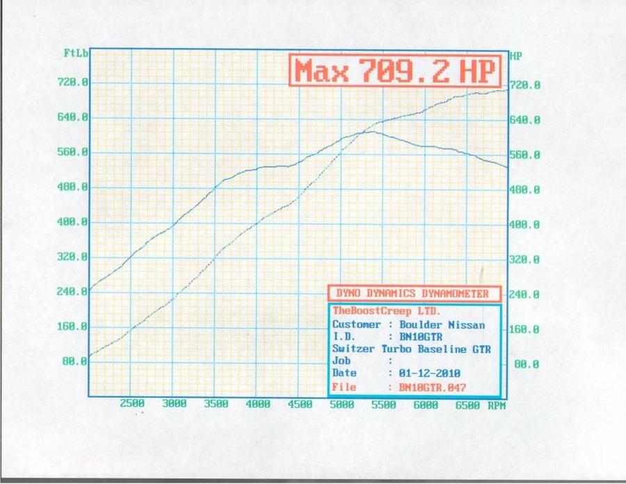 I am really excited to announce that Boulder Nissan has become an authorized installer/retailer for the Switzer products. We just finished the install on my GT-R and verified the tune on a Dyno Dynamics dyno. The previous mods to my car were HKS EBC, upgraded acuators, Forged E-tune, Greddy intercoolers, AAM downpipes, CBRD midpipe and HKS rear exhaust. With these mods the car produced 540awhp on the same dyno. Stock cars produce around 430awhp on this dyno.