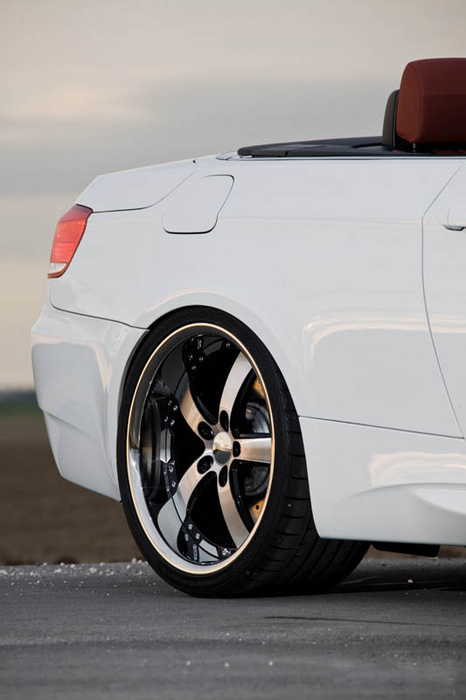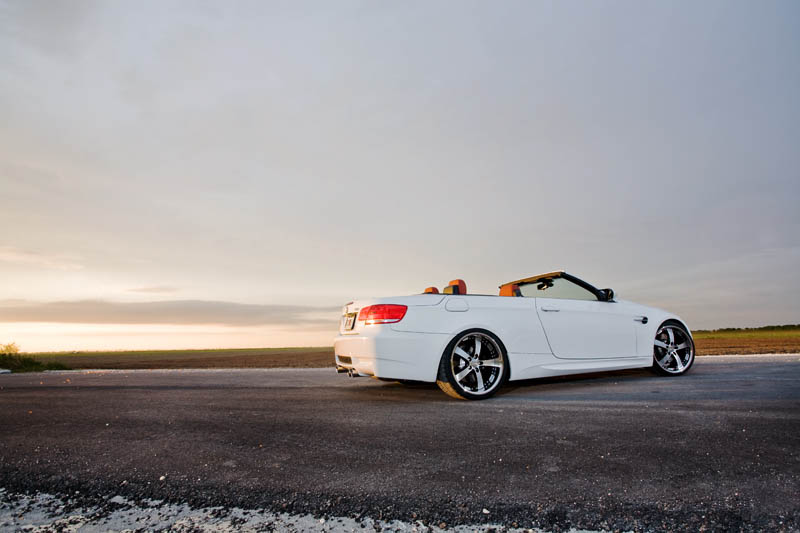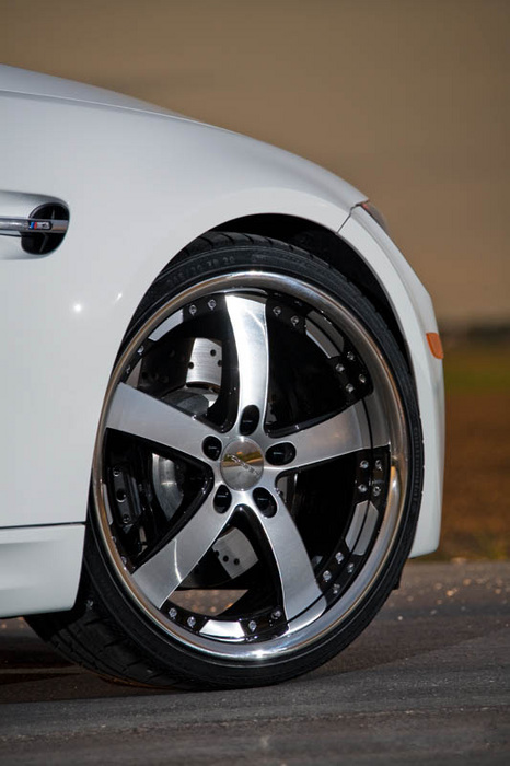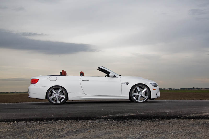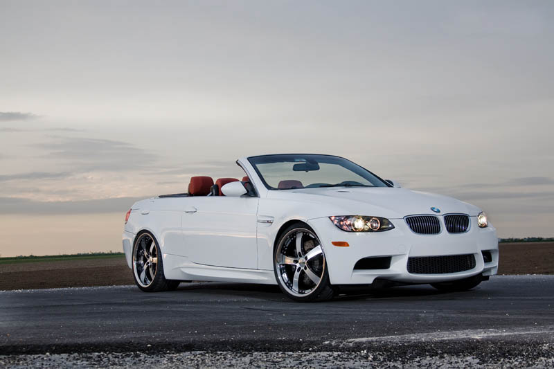 Here are a few pictures of a BMW M3 Convertible Coupe on 20x9 and 20x10.5 Vossen VVS084 in the Black Machined finish. The car is also lowered on H&R springs.