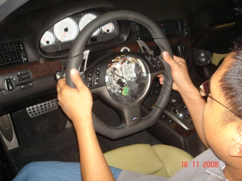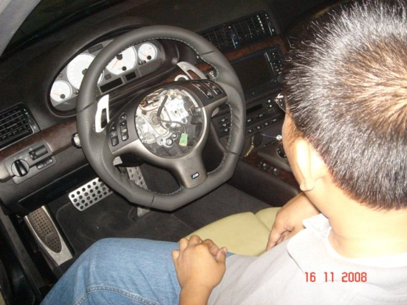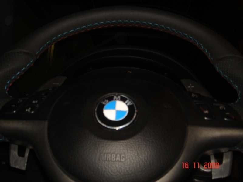 You can see how beautifully the wheel has been refinished and it is almost the exact same thickness as oem. The only place i felt it was not as thick was the top, 10-2 o clock position but it wasnt that noticeable actually