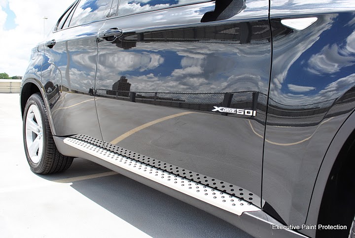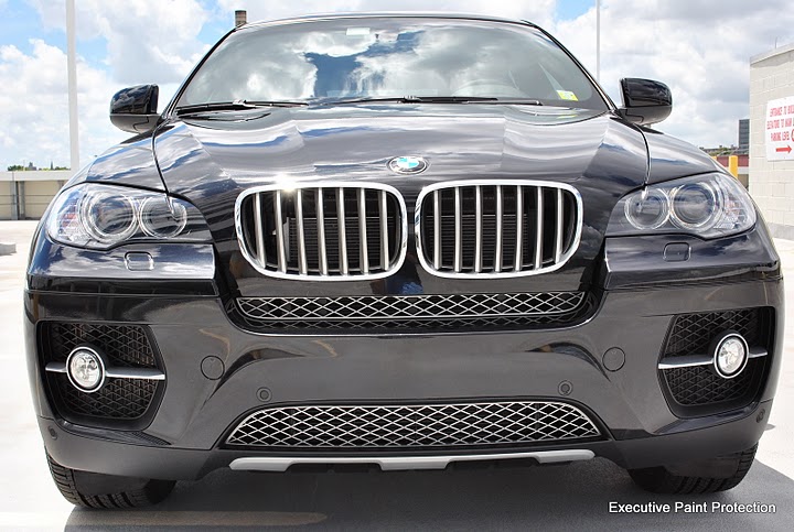 This X6 came in needing a good detail prior to us installing CLEAR STEEL Protection Film. Being a black vehicle that had been through a few washes had moderate scratches and paint imperfections that needed to be removed before installation. After our prep process this X6 need a three-stage Menzerna polishing process to correct the paint and prepare it for Paint Protection Film (Clear Bra). This is a monster hood and we needed ever inch of the 60" film to make it work. We removed the front grills for a seamless look and wrapped the fenders and front bumper, including headlights and mirrors. Once the install was completed we sealed the film with CLEAR STEEL PPF Sealant and put a coat of Swissvax Mystery on the rest of the exposed paint. From the pictures you can see we achieved a great final result.