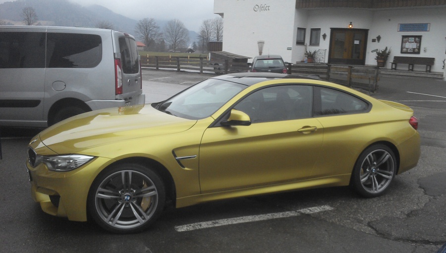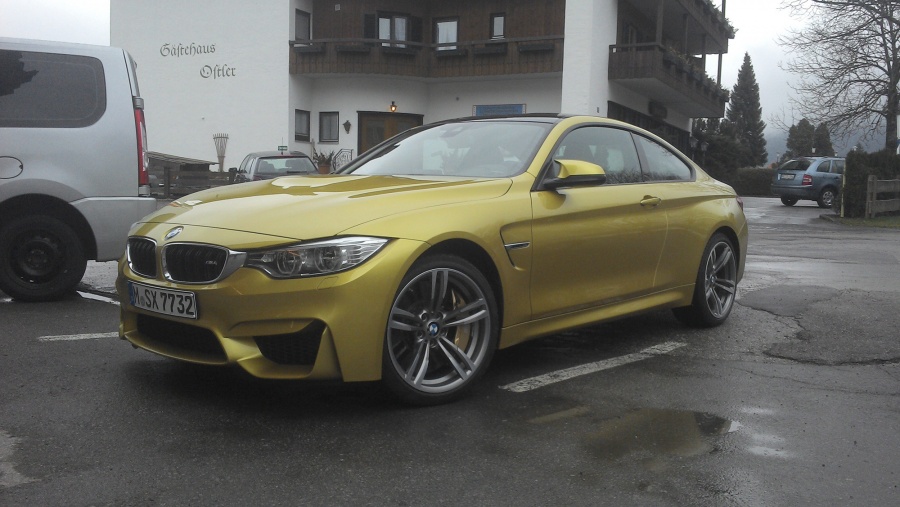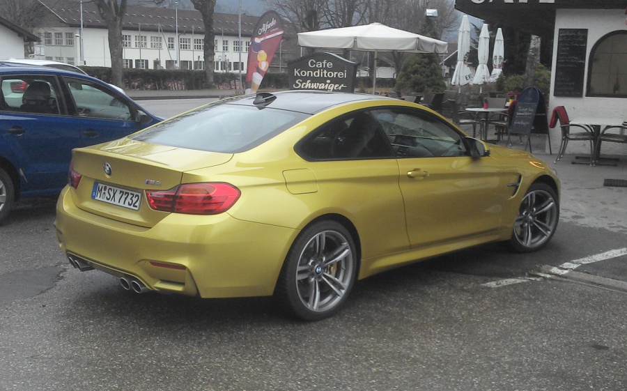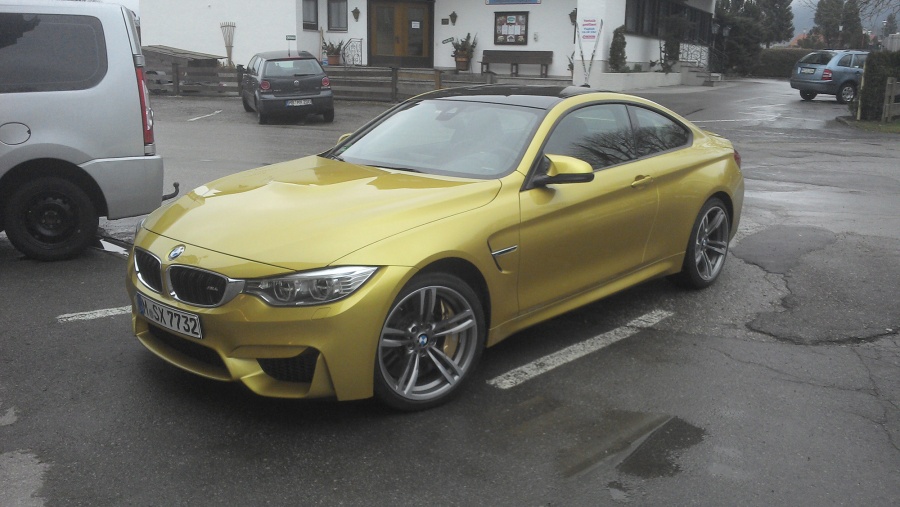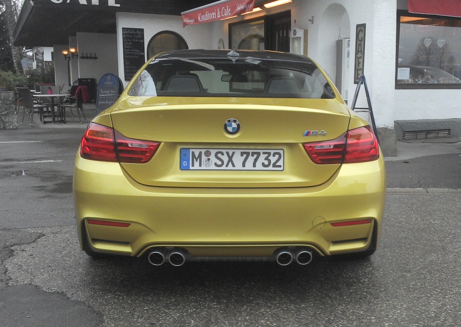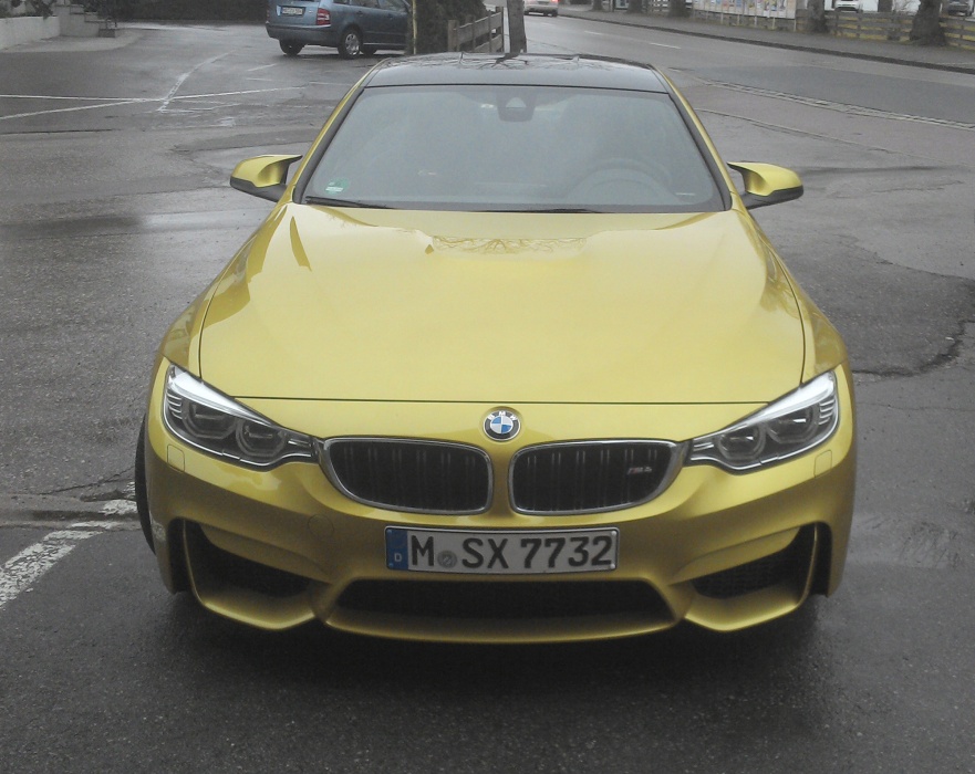 I just saw the new M4 coupe standing there when I passed by. So I did a quick u-turn and took these pics for you! (sorry just had my phone).