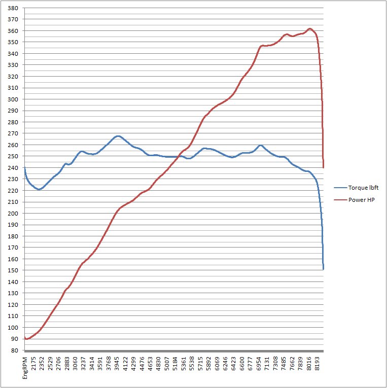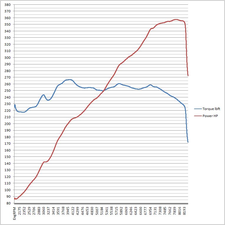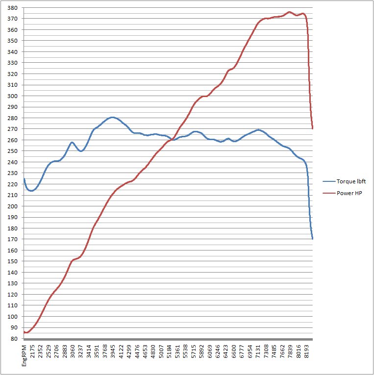 Max HP: 376.3 @ 7830 RPM (Run-1) - +10hp Gain