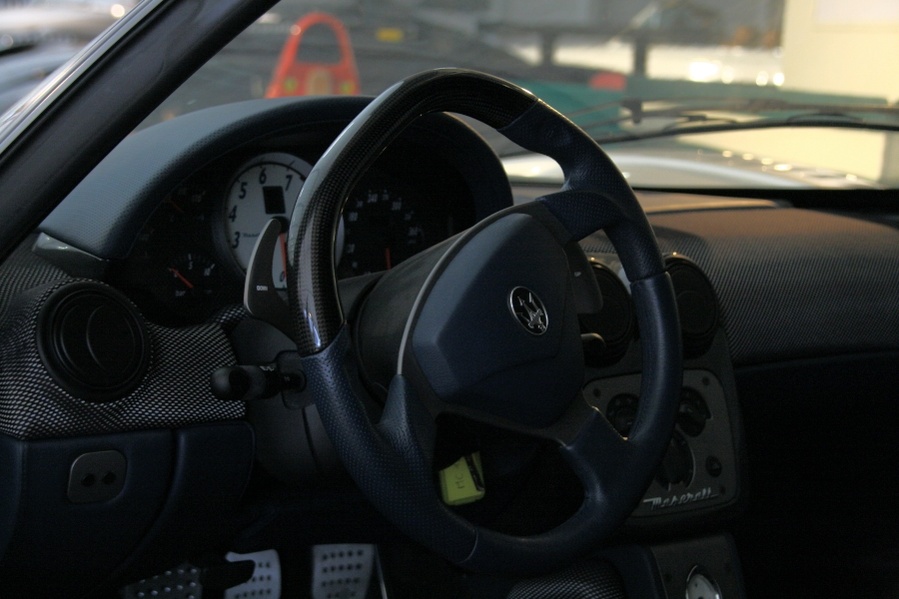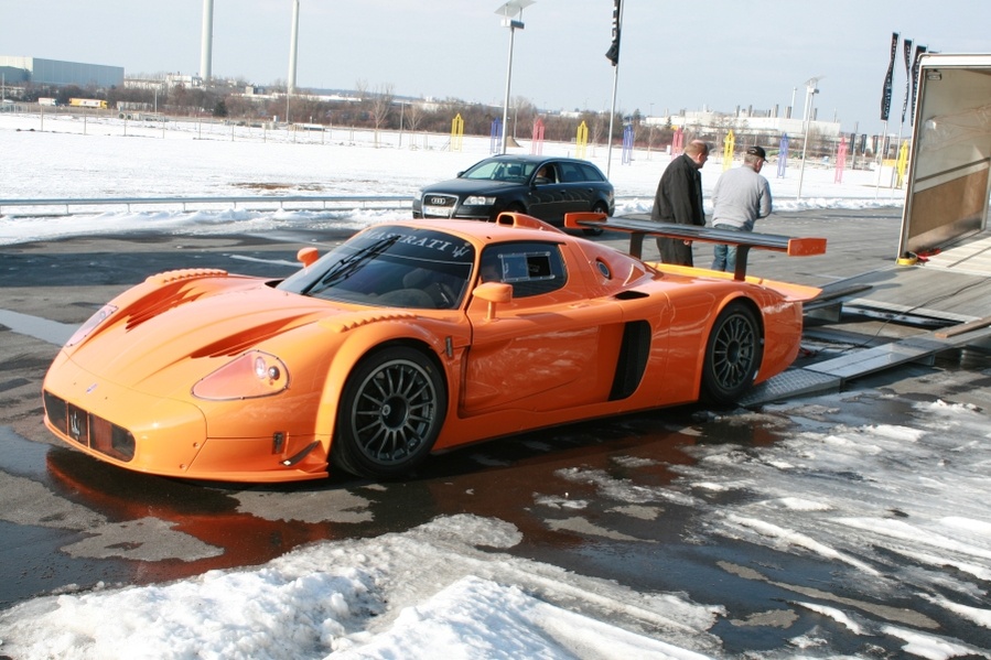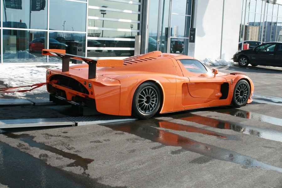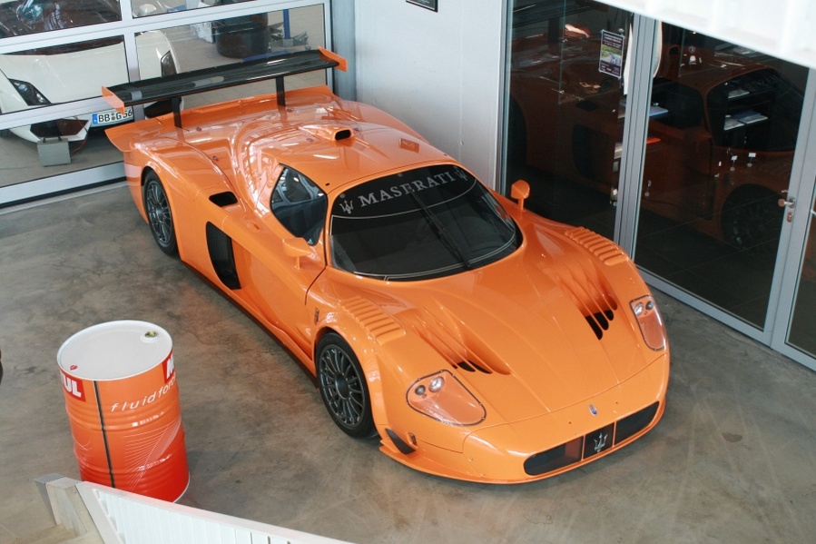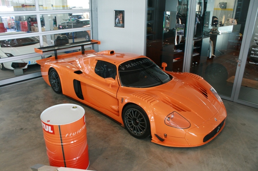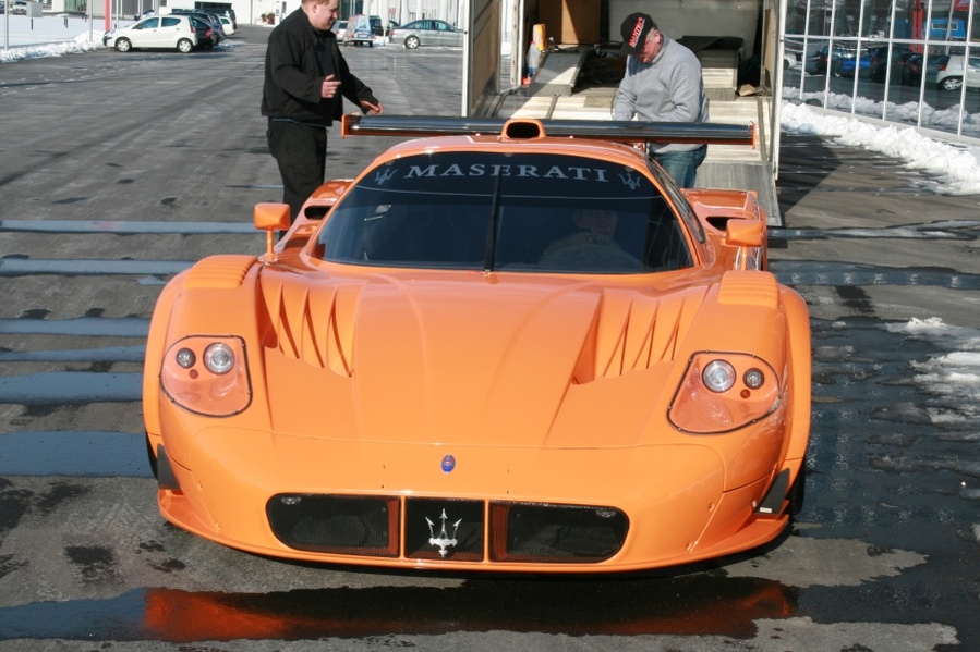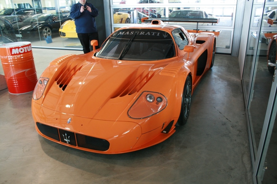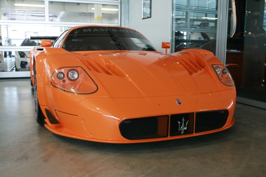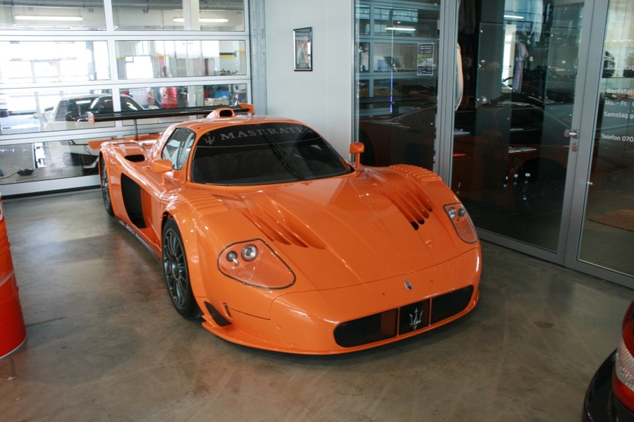 And then Maserati made a small series of 12 individual numbered cars, called the MC12 Corsa, which were for trackday use only. One of those 12 (the very first one to be exact) was transformed to some kind of street legal use by a rich german customer. You can find pics of that black car with german licenseplates from Munich (M-HH982). It was auctioned last year at Oldtimer Grand Prix Nürburgring together with a white/blue street MC12. Will show pictures of both if you like. The orange car also is a MC12 Corsa and ran on german dealer plates for a while, but never was totally transformed for street legality. It was for a while with a customer connected to Edo Competition, but now is for sale with Gohm in south Germany.