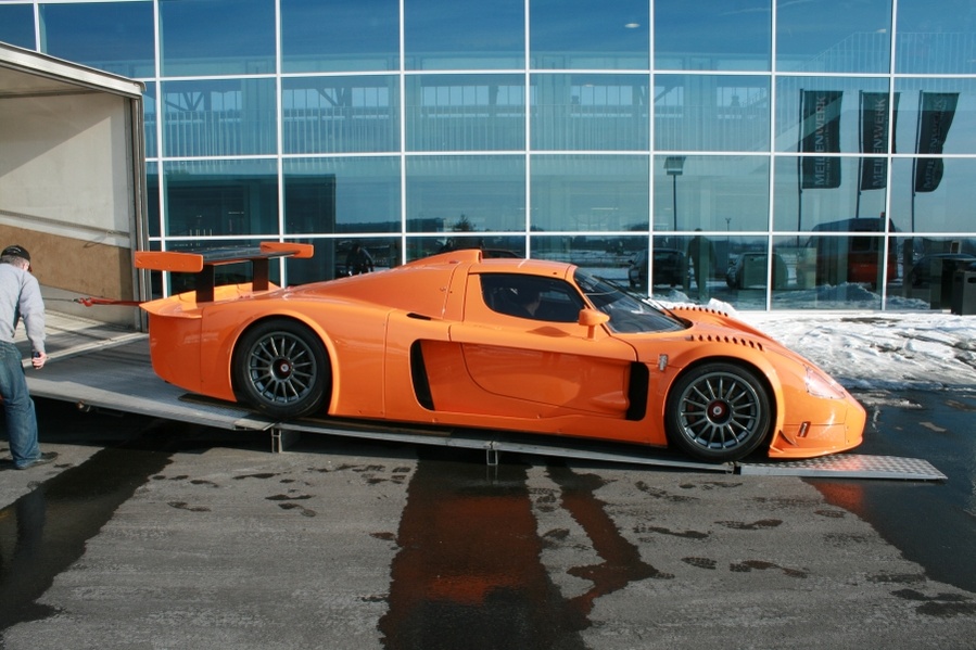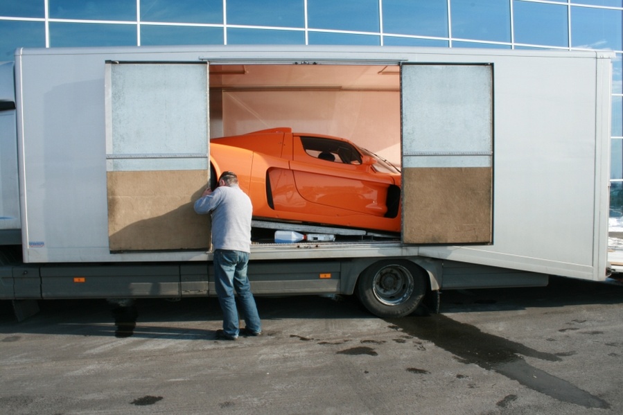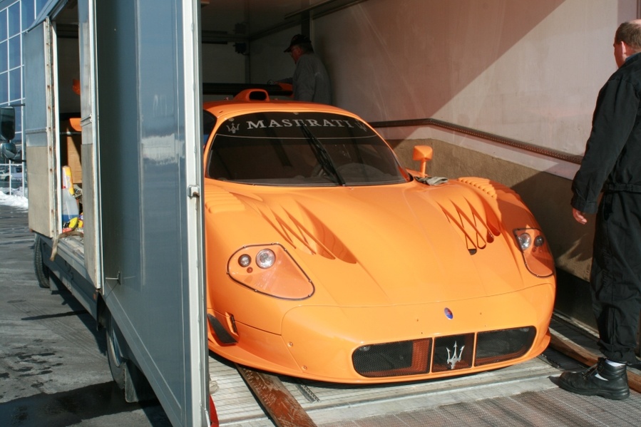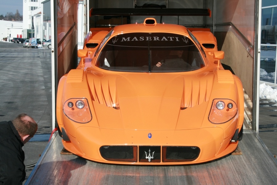 And here a few pics of the orange painted MC12 Corsa. While the black one above is #01 this is #08. Pictures were taken by me in March 2010 in Meilenwerk Stuttgart/Germany at two different days. First pic is in the workshop of Ferrari/Maserati dealer Gohm, the other pics are three days later when the car was loaded on a truck for the "Retro Classics" motorshow in Stuttgart, were it was shown together with a white/blue MC12 streetcar (will have to look up those pics as well).
