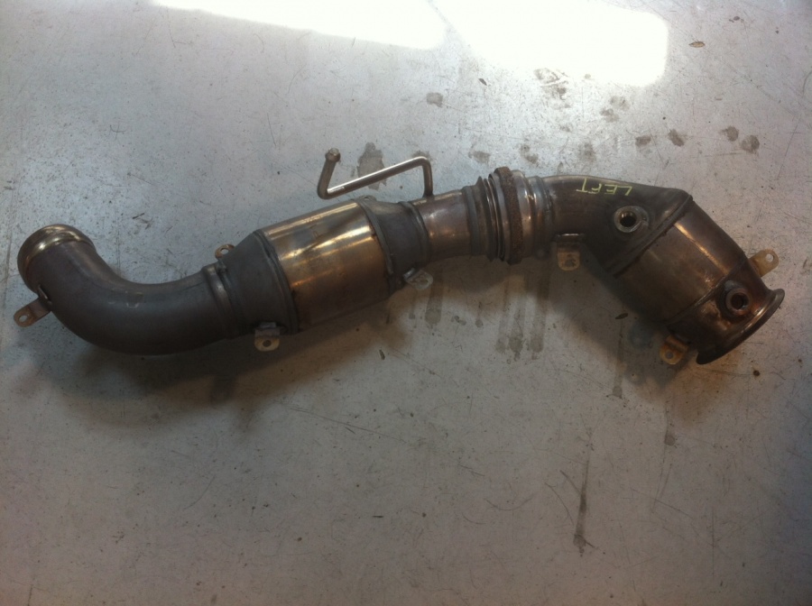 Below are some new photos which show the the factory sport exhaust option ($5,000). Our X-pipe exhaust will certainly be less! Also, notice the factory cats (with two sets of cats per side)... they look very restrictive. I am not sure of the exact cell count, but we estimate 750-1000 CPSI. We will be using the latest HJS 200 cell cats for our sport cats. Please let me know if you have any questions. Thanks!