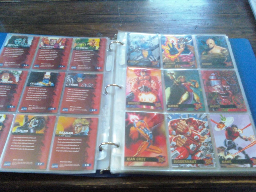 There are: 2 hulk cards, 2 gambit cards, kane, silver surfer vs majestic, Wolverine, Penance, Human Torch, Storm, Quicksilver, Hawkeye, Thor, Red Skull. They are sets ranging from 1993-1997
