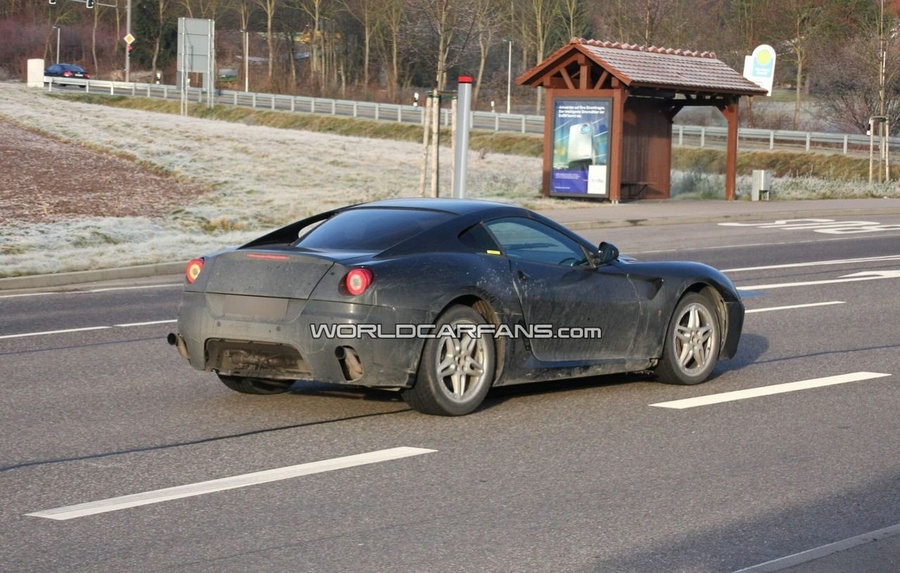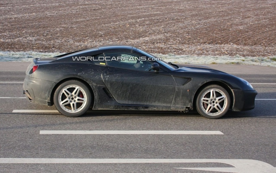 This particular prototype using the 599 GTB Fiorano body looks quite normal except for the different front bumper, slightly unevenly shaped headlamp lenses, single pipe dual exhaust and a peculiar removeable hard top.