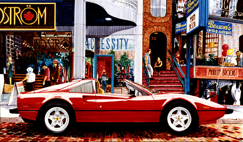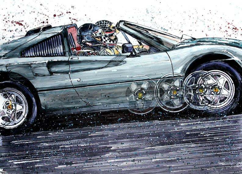 Second in my series of FCA Track Day paintings at Mosport. This one of a grigio 328 at speed.