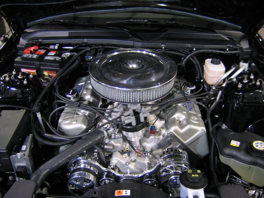 We installed a Billet Specialties front drive for all the accessories. This includes a billet front timing cover, water pump, power steering pump, alternator, air conditioning compressor, and serpentine belt with pulleys. We bought 3" stainless exhaust from Granatelli, which includes everything from the header collector back.