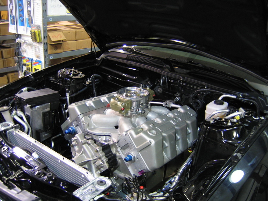 We installed a Billet Specialties front drive for all the accessories. This includes a billet front timing cover, water pump, power steering pump, alternator, air conditioning compressor, and serpentine belt with pulleys. We bought 3" stainless exhaust from Granatelli, which includes everything from the header collector back.