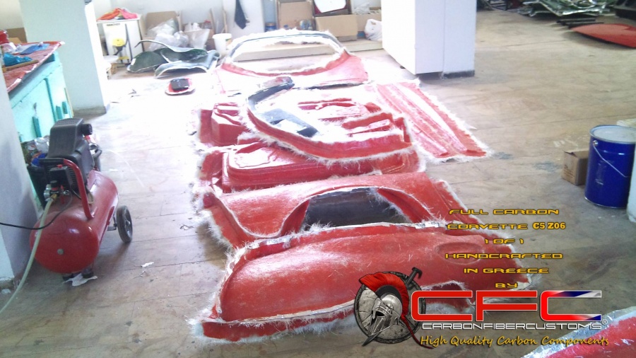 To be precise: After 3 months and 800 Hours of labour building the molds of all the OEM Corvettte Panels ( Doors, Bumpers, fenders, roof etc) the car was ready via Vac.Infusion Process.
