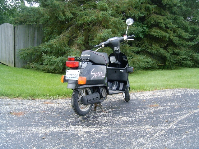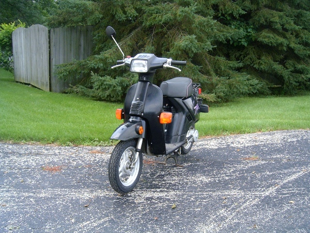 So after 11 years I finally decided to put a plate on my trusty 1987 Honda NQ50 Spree! Of course, after all that time, it needed some maintenance, so new tires and a battery were in order. Put on a different carburetor and muffler, and now it has 5 mph more top end! Cleaned it up a bit and it looks great!