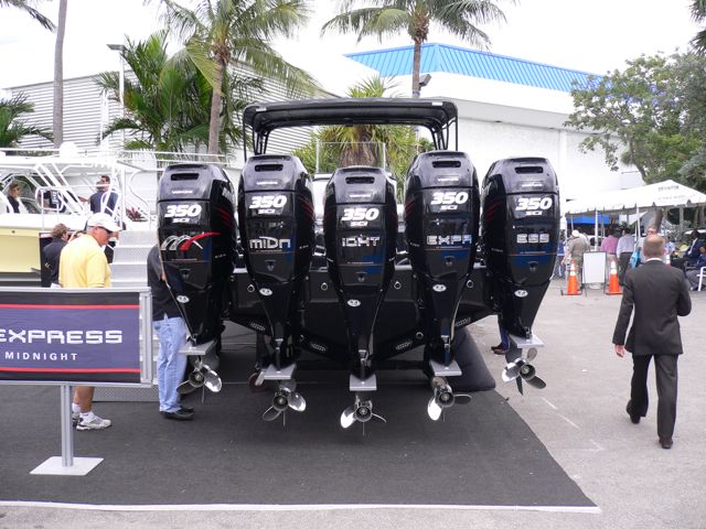 From talking with the Midnight xpress guys at the last boat show I went to, there wasn't a huge advantage to going with the 4 outboard setup vs. 3. I wonder what tangible benefits there would be to going with 5 besides looking like the focking man at the docks.