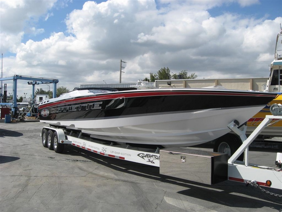 "-Stopped by Lip Ship Cigarette on the way home from Key West. Got a look at the very last Gladiator to be built. This Lip Ship Edition was just off the hook, in a league of its own for sure. Pictures don't do justice, the paint is just amazing, the deck looks like brushed stainless steel. The attention to detail and the level of quality put into this ride was very impressive to say the least. I wish I was in the position to give it a home!