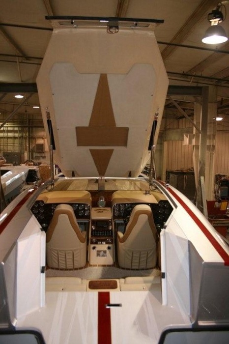 seems like an odd interior finish for a boat like that... but badass nonetheless!