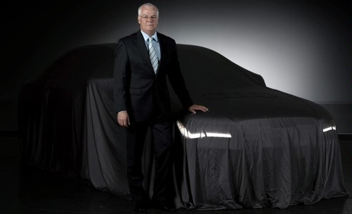 The first teaser image promoting the Audi A8 has recently been found. Standing with the cloth-covered A8 is Audi's Board Member for Technical Development, Michael Dick.