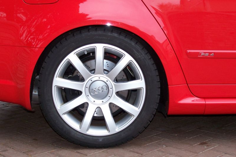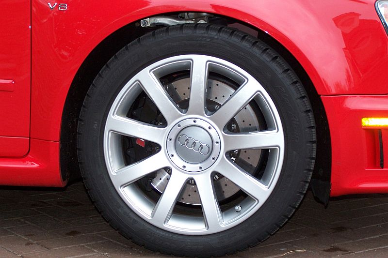 The Cherry Bomb is now ready for winter-2004 C5 RS6 18" rims with Michelin Alpin PA2 winter tires in 255/40-18 with thicker sidewall and same overall diameter as my summer tires (Michelin PS2's in 275/30-19), enabling them to handle winter potholes without bending the rims:
