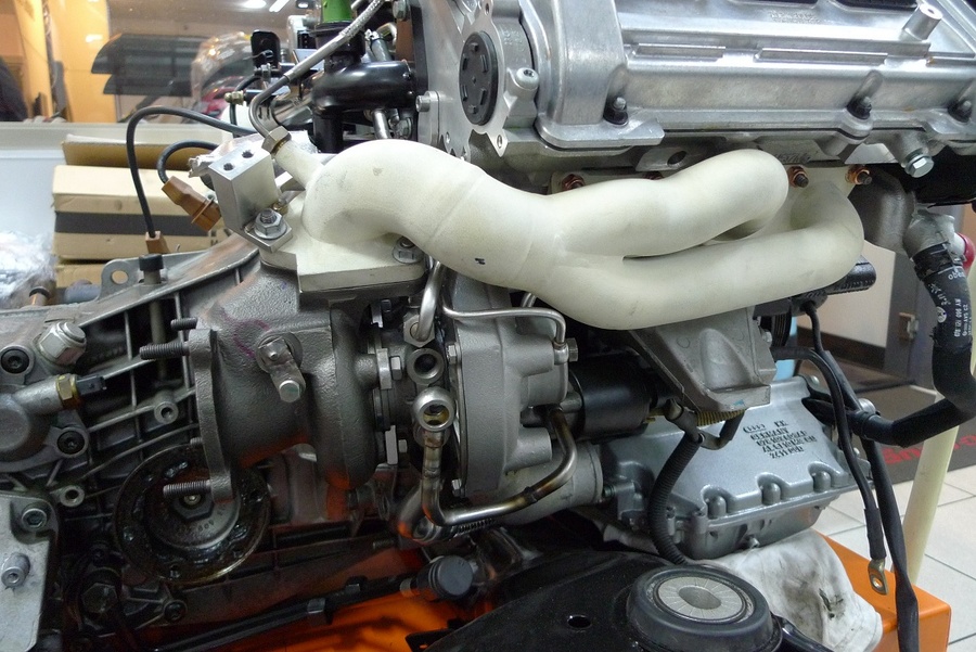 Jeebus those are some big turbos... And that looks like a 996 shifter and brake handle. Awesome.