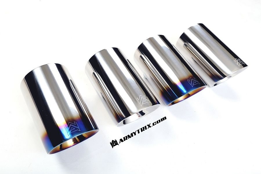 To enhance Audi S5 by adding the Armytrix stainless steel exhaust system to increase power, reduce weight, and improve sound. This precision-made performance system delivers more power, especially in the low and mid rev range, the effect on the sound is significant, adding a deep resonant sporty sound, but at the same time neutralizes the annoying frequencies in the most critical rpm range. Complete the look with a set of four sporty chrome polished silver tailpipes.