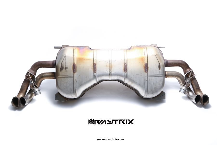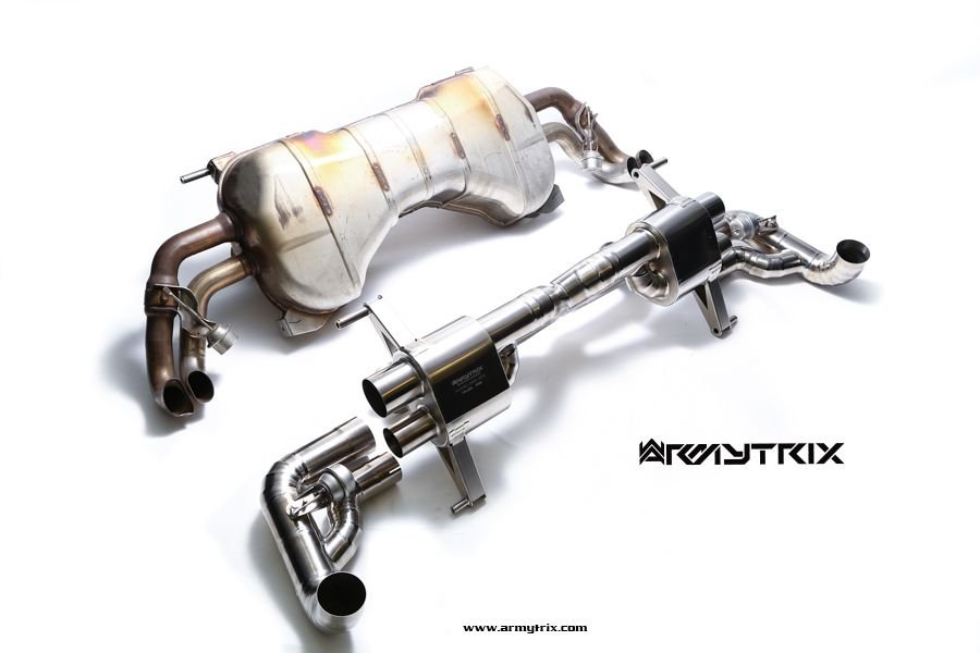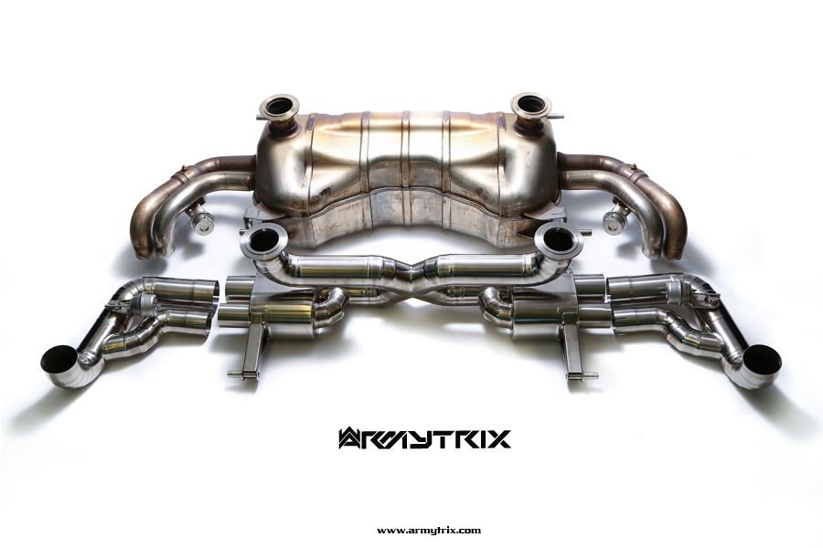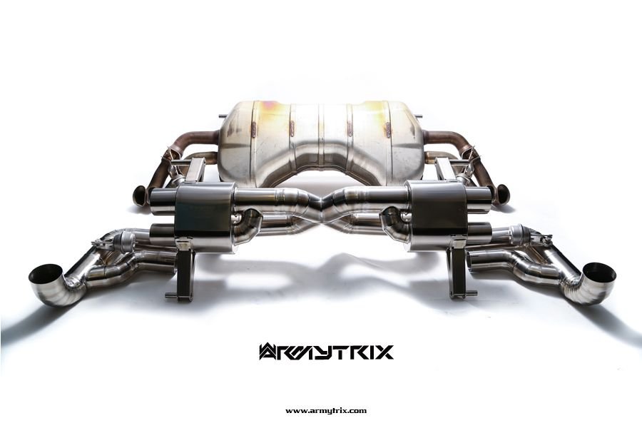 Armytrix has spent hundreds of hours of development and sound tuning to unlock the perfect combination of exhaust tone, sound volume and practicality. The valved exhaust system which was specifically designed to unlock power hidden in the V10 engine and produce a much more aggressive and characteristic exhaust sound. Another great benefit of the Audi R8 system is that it's so much lighter than the factory exhaust, shaving nearly 21 kilogram of dead weight from the rear of the car, Armytrix achieved this by using aero-grade titanium throughout the entire system and of course, the titanium racing exhaust delivers the best sound for each individual owner at all revs without needing manual switching; this is an unmatched piece of performance engineering.