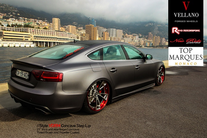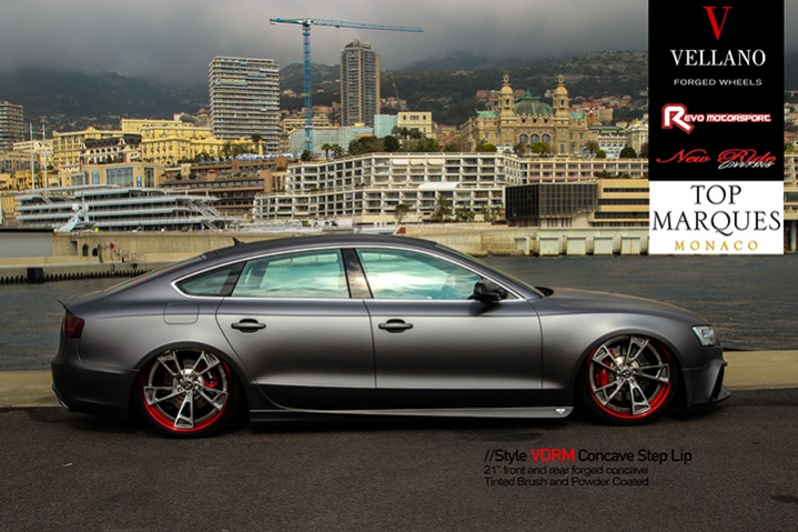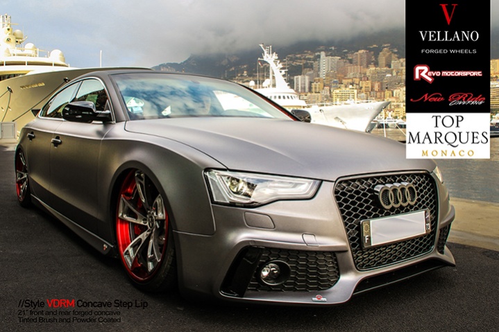 Audi A5 sitting on 21" #VellanoWheels VDRM Forged Concave Step Lip. Stunning in 2015 #TopMarques in #Monaco France with our friend REVO MOTORSPORT #VellanoForged #ForgedWheels