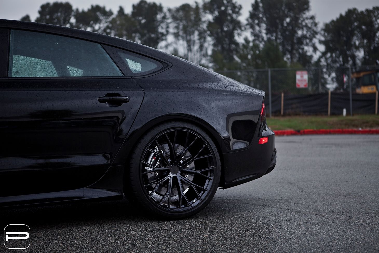 Every now and then we enjoy a fully blacked out car, even more so when it’s a menacing sedan like the Audi RS7. The long body sedan with the swooping rear tail is definitely one of our favorite four doors on the market today. Sitting on a set of twenty one inch forged RS29.Evo’s, this RS7 definitely looks like a car you wouldn’t want to mess with on the streets. The finish was kept to a simple gloss black, but even in that gloss black none of the details of the RS29.Evo were lost.