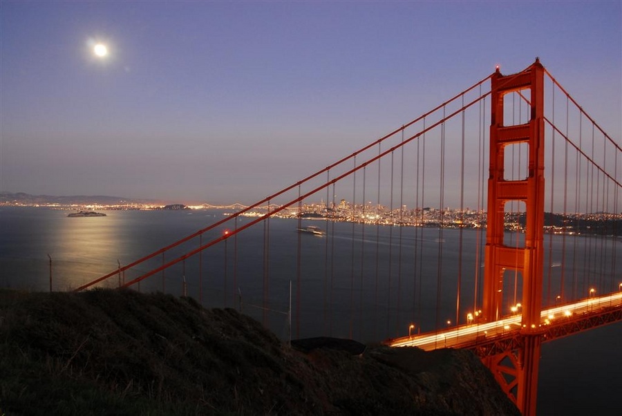 below is my attempt of the mighty GG. Alcatraz is all moon lit, it was a nice night to snap some shots. hope ya enjoy