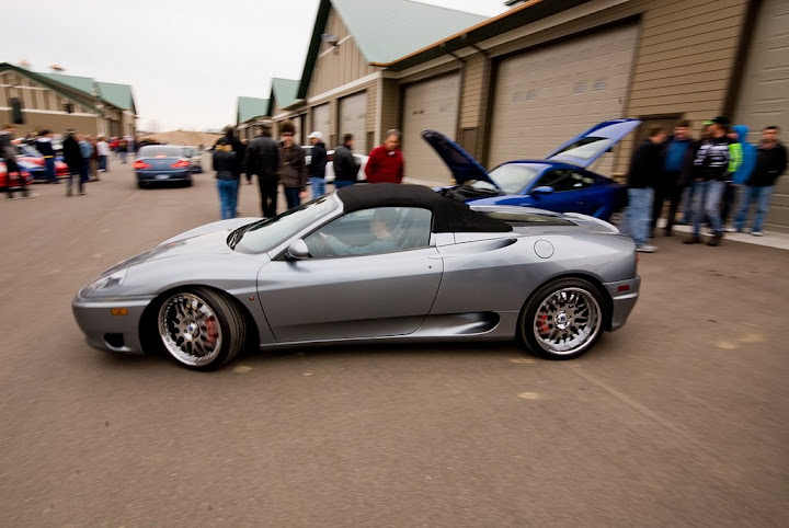 When I woke up this morning and drove to Auto MotorPlex to help a member on here (Luis) set up for Cars & Cafe at 7:30am this morning, it was cloudy and 27 F with a chance of rain later in the afternoon. I was pretty nervous that nobody was going to show up and we'd get rained out. To my surprise, the rain held off and the temperature gradually began to rise and luckily cars began to arrive. Not just a few dozen cars, but a few HUNDRED showed up to the first Cars & Cafe of the year here in Minnesota! There was everything from a Nissan Pulsar GTi-R to a 1959 Jaguar XK140, from M3s up to Ford GTs! We had 6 or 7 Ferrari 360s show up (2 were delivered to new owners via a big transport truck this morning!) in addition to 3 Audi R8s and a Ruf CTR2! Enough of the chit chat, time to get down to the best part: PICS!!!