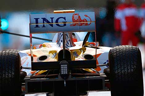 Front wing formats: Plain single flaps (Renault, Toyota), single flaps with outer winglets (Ferrari, Williams) and twin flaps (McLaren, BMW).