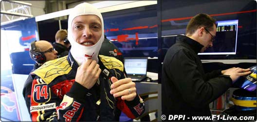 Contrary to earlier reports, the new car is being shaken down by Sebastien Bourdais and not new rookie team-mate Sebastian Buemi.