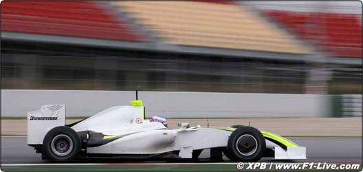 Jenson Button took over testing duties in the new Brawn Mercedes from Rubens Barrichello today and set the pace a cool second clear of Felipe Massa in the Ferrari. Button completed 130 laps, his fastest time of 1:19.127s coming on his 93rd tour of the day.