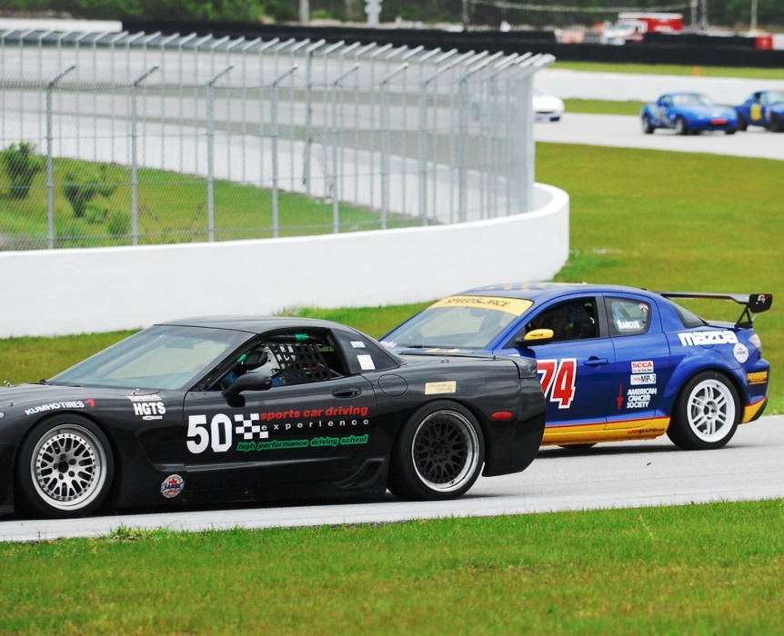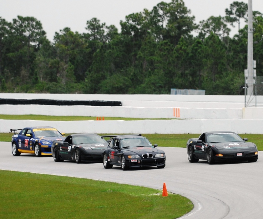 Chased by the BMW'S they could not catch the Buzzman as he padded his points lead in the SCCA Florida P 2 class by winning both races at Palm Beach raceway.