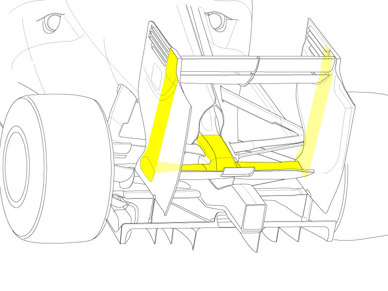1. There are many different parts of bodywork fitted to cars from a variety of teams, which have been designed specifically to take advantage of the change in airflow caused by the activation of the DRS.