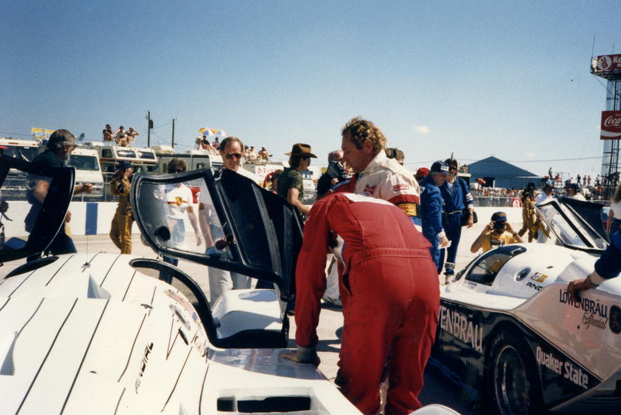 Here is a couple of shots of me and Jochen at Watkins Glen when he was drivng for McLaren in the 70's. And at Sebring when he teamed with Bobby Rahal and won the 12 hour event in Bruce Levin's 962. That's me with the sunglasses in front of the car, lending moral support.