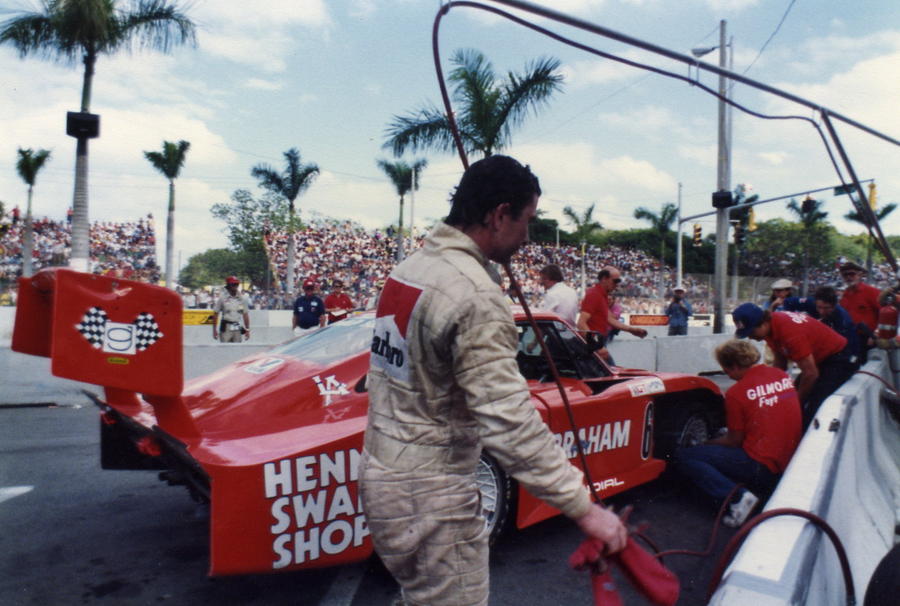 Now while all this was going on, Preston's hired gun for the race, Bob Wollek was out on the track doing his job. When he came into the pit and found out who the new team member was, he went ballistic, to put it mildly. He was not about to give a car in the lead to AJ and let him claim the victory. Final result, the team won the 24 hour race and went on to compete again in Miami, in the IMSA endurance race there.